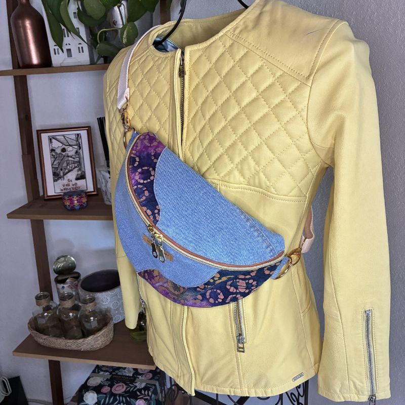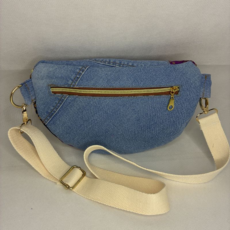 Le sac banane en jean recyclé et en coton est à la fois élégant et pratique. Sa texture douce et chaleureuse apporte une touche de style unique et lui confère une allure vintage et tendance. Elle possède un grand compartiment ainsi qu’une poche zippée à l’arrière. La sangle, qui est réglable, permet de l’ajuster facilement à votre taille pour un confort optimal. De plus, si vous le souhaitez, la sangle est également changeable, ce qui vous offre la possibilité de personnaliser votre sac selon vos envies ou de le coordonner avec différentes tenues. Ce sac banane est donc un accessoire à la fois fonctionnel et stylé, parfait pour vos sorties décontractées !