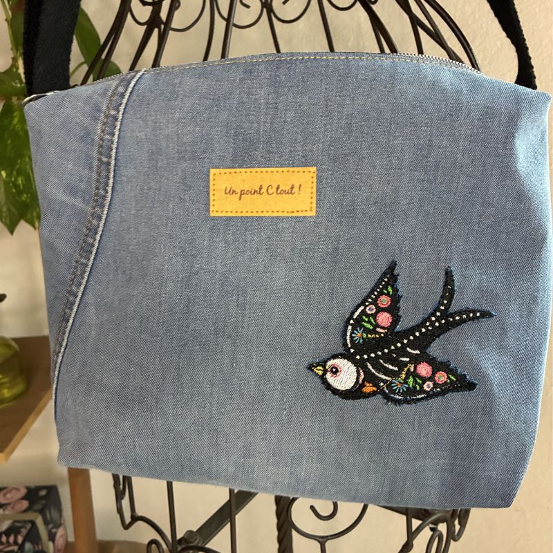 Le sac Manille est un joli sac jean recyclé avec une broderie sur le devant, ce qui lui donne une texture douce et élégante. Il se porte facilement en bandoulière ou à l’épaule grâce à sa sangle réglable, offrant ainsi un confort personnalisé. À l’intérieur, il dispose d’une poche zippée pratique pour ranger en toute sécurité vos petits objets. il mesure 24cms x 20cms. C’est un accessoire à la fois chic et pratique, parfait pour transporter le principal de vous affaires et à compléter votre look !
